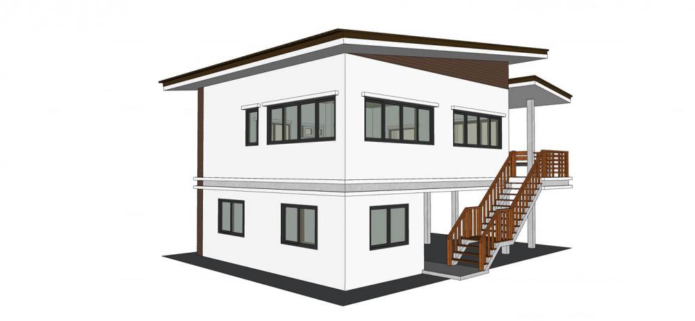 ออกแบบบ้านโมเดิร์น 2 ชั้น 3 ห้องนอน 3 ห้องน้ำ 1 ห้องครัว
